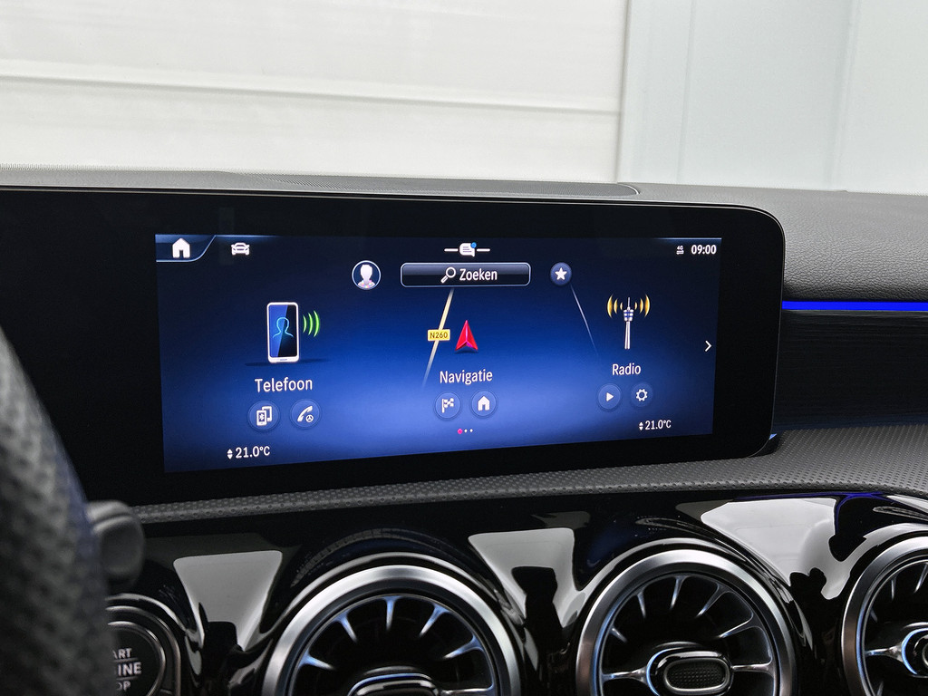 Alle functies die u onderweg nodig heeft, worden permanent geregistreerd en zijn afleesbaar op het digitale dashboard. De achteruitrijcamera maakt inparkeren gemakkelijker dan ooit. Zo'n lekkere jonge auto heeft natuurlijk leuke extra's, zoals remote services. Met een speciale app maakt u overal verbinding met de auto. Zo kunt u functies activeren en controleren. Voor de veiligheid op de weg is het goed dat u uw ogen op de weg kunt houden en uw handen aan het stuur. Want het audio-installatiesysteem, met DAB-ontvangst, en het navigatiesysteem met harde schijf bedient u vanaf het stuurwiel en met spraakbediening. Nieuwe smartphones hebben geen snoeren meer nodig om op te laden. Daarom heeft deze Mercedes-Benz A-klasse een draadloze oplaadmogelijkheid voor telefoons waarmee u onderweg simpel en effectief voor een volle accu zorgt. Ook WIFI-hotspot, automatische airconditioning, sportstuur met schakelpaddels, regensensor, cruise control en automatisch dimmende buitenspiegels zijn aan boord.