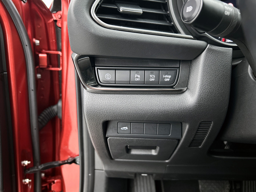 Bij het inparkeren hoeft u het laatste stukje niet te gokken: de achteruitrijcamera kijkt voor u uit. Met adaptive cruise control houdt de auto zelfstandig afstand tot uw voorligger. Een veiligheidsverhogende optie waarmee u comfortabel onderweg bent. Spraaksturing is onderdeel van de uitrusting van deze auto. Met uw stem kunt u de belangrijkste voertuigfuncties bedienen. Dankzij Connected Services heeft u overal en altijd uw dashboard op zak. Alle belangrijke functies zijn te checken via de app. Je weet altijd waar je moet zijn, dankzij het full map navigatiesysteem. Ook is de Mazda uitgerust met: automatische airconditioning, DAB ontvangst, regensensor, keyless entry, automatisch dimmende binnenspiegel en lederen stuur.