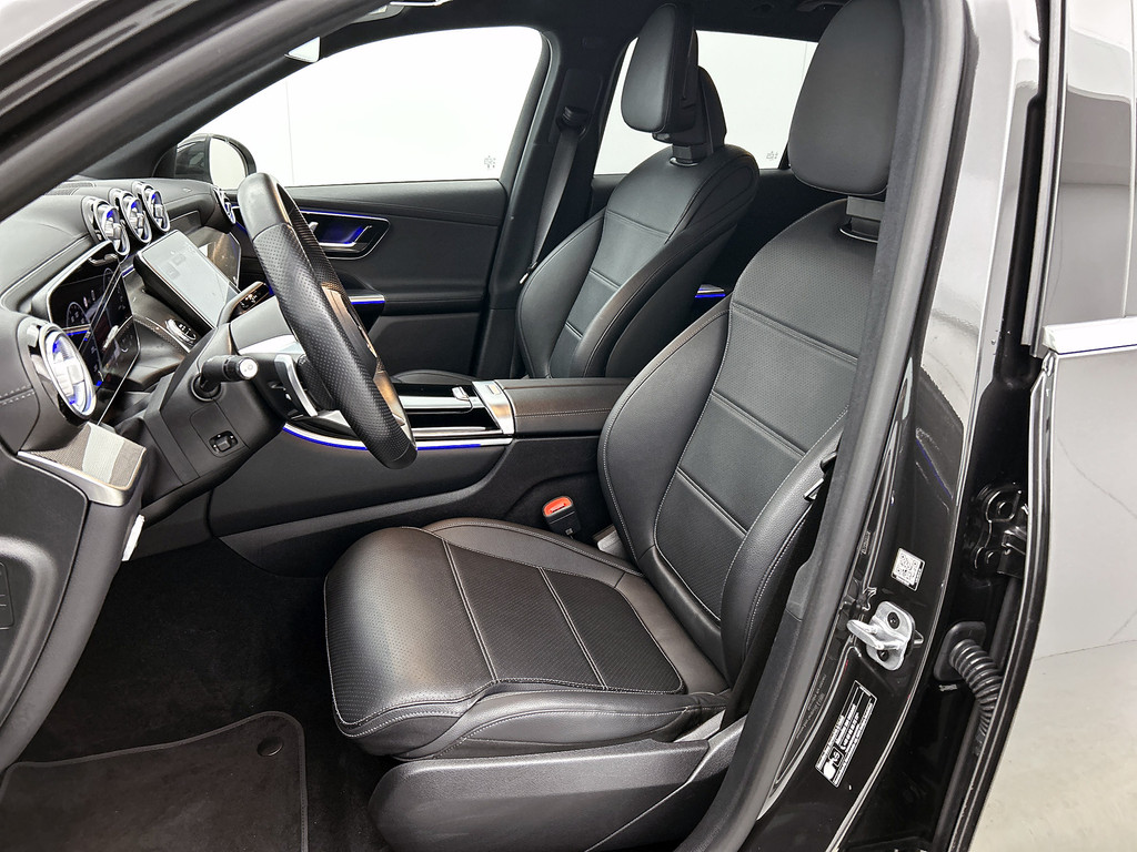 In Duitsland is auto's maken een ernstige serieuze zaak. Dat blijkt al jaren door de onderscheidende rijkwaliteiten, oerdegelijke uitvoering en technische innovatie van Duitse merken. De AMG-styling geeft dit model een elegante en opvallende uitstraling. Elektrisch? Benzine? Bij deze Mercedes-Benz GLC-klasse kan het allebei. De hybride motor biedt de ideale keuzecombinatie. Ja, en die luchtvering, dat is wel heel prettig hoor. Stabiliteit, weinig windweerstand, optimaal contact met de weg. Een erg fijne extra. Met zijn lederen bekleding is deze Mercedes-Benz comfortabel en stijlvol. 's Winters komen de verwarmbare voorstoelen heerlijk van pas. En ze zijn ook nog eens voorzien van massagefunctie. Zit u goed? De stoelen zijn eenvoudig instelbaar dankzij de elektrische bediening met geheugen. De elektrisch bedienbare achterklep opent met een druk op de knop. U wordt in deze auto ook getrakteerd op 19 inch lichtmetalen velgen, LED koplampen, AMG-styling, zwarte hemelbekleding, donker getint glas achter en neerklapbare achterbank.