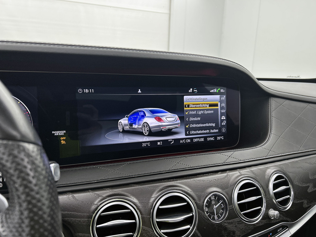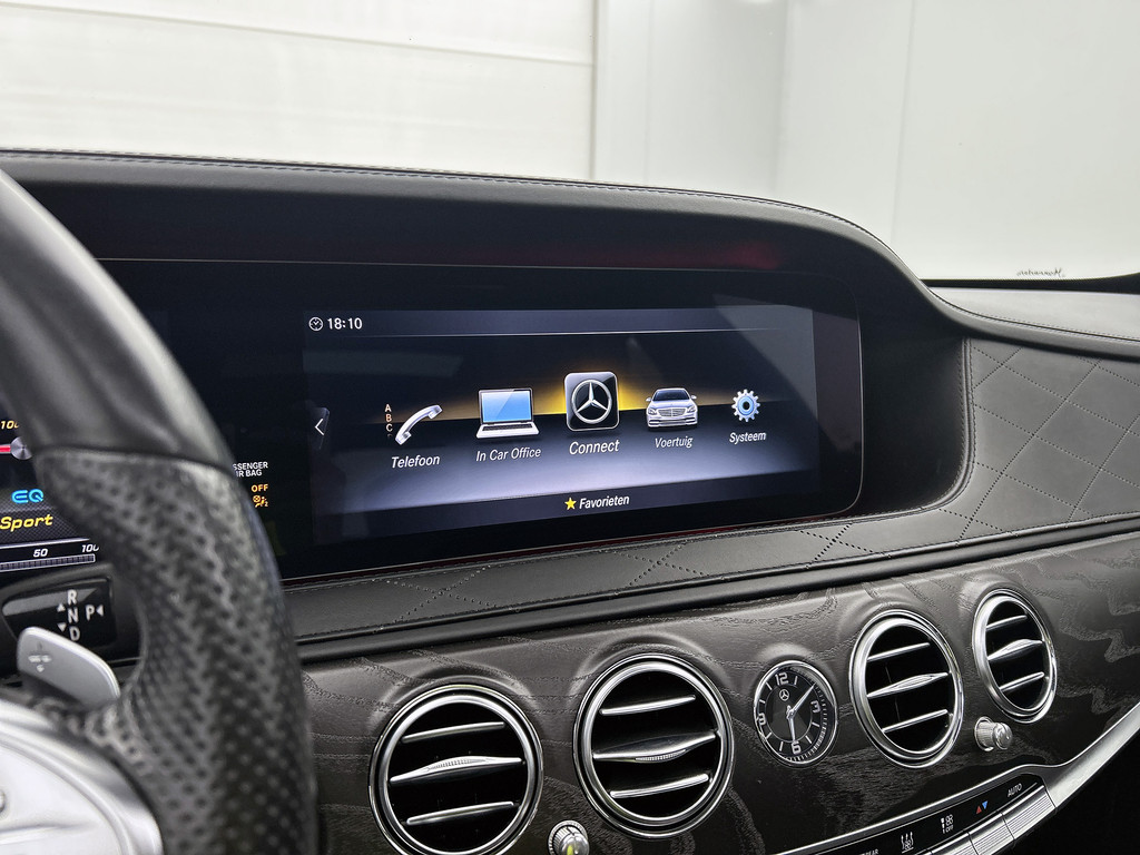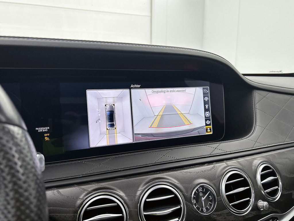Zoals u mag verwachten van deze Mercedes-Benz S-klasse is hij uitgerust met een reeks aan actieve veiligheidssystemen. Verkeersborddetectie herkent tijdelijke en permanente verkeersborden langs en boven de weg. Het Lane-keeping systeem doet precies wat nodig is: waarschuwen en corrigeren bij onbedoelde overschrijding van de rijstrooklijnen. Een korte blik over uw schouder bij inhalen of afslaan is niet altijd genoeg. De actieve dodehoekdetectie helpt de veiligheid te vergroten. De auto is ook uitgerust met head-up display, front assist, forward collision warning system, hill hold functie, vermoeidheidsherkenning en autonoom remsysteem.