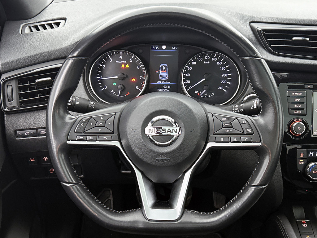 De nieuwste veiligheidssystemen komen in deze Nissan Qashqai samen. De camera van de verkeersborddetectie herkent verschillende soorten verkeersborden en toont deze op het dashboard. Het Lane-keeping systeem let constant op en waarschuwt of corrigeert als u onoplettend over de lijnen van de rijstrook gaat. Bij concentratieverlies en toenemende vermoeidheid van de bestuurder, geeft de auto een sterk signaal om u weer bij de les te houden. Hierdoor kunnen veel ongelukken voorkomen worden. Verder is deze auto uitgerust met dodehoekdetectie, hill hold functie, brake assist en bandenspanningcontrolesysteem.