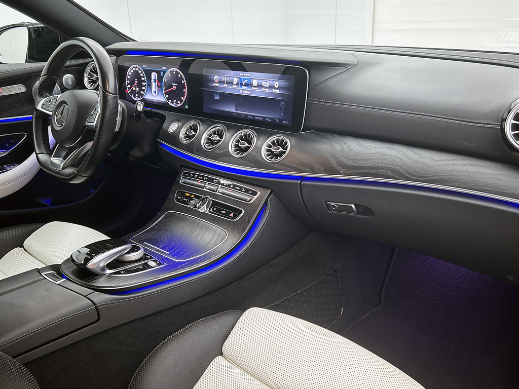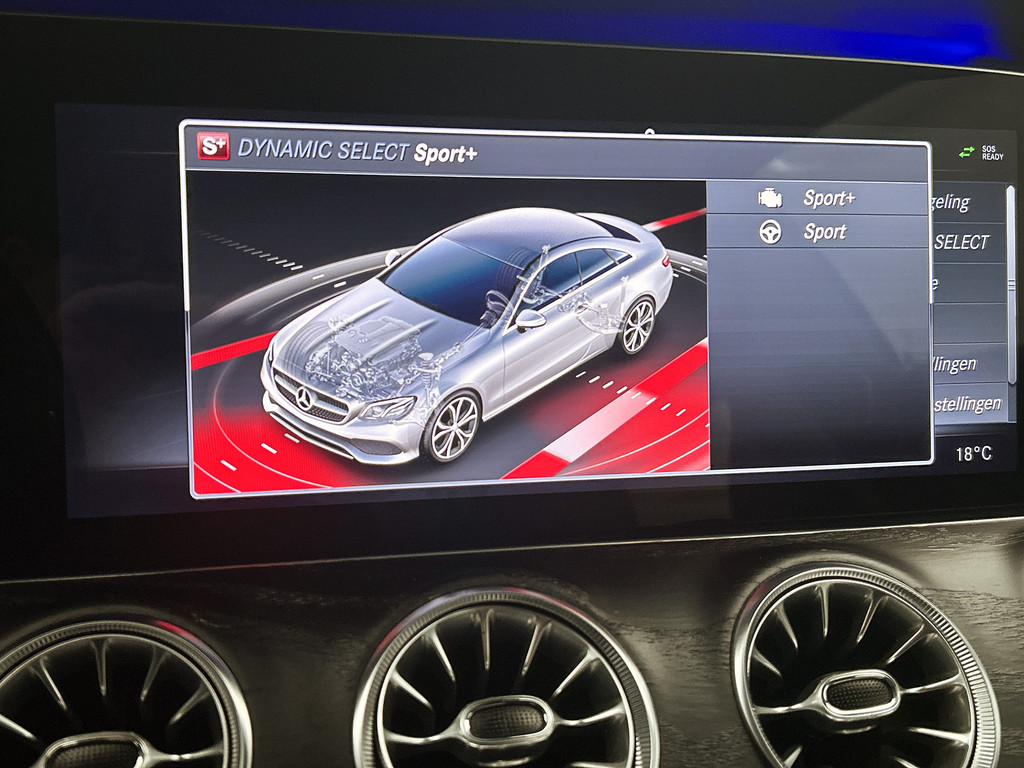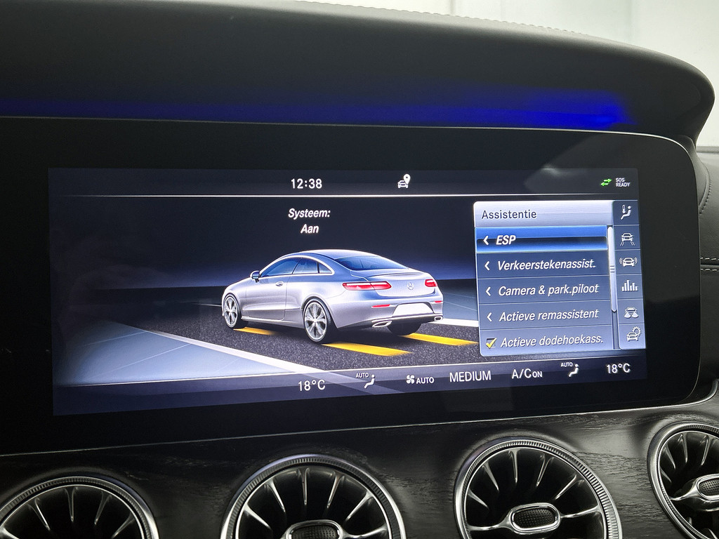 Zoals u mag verwachten van deze Mercedes-Benz E-klasse Coupé is hij uitgerust met een reeks aan actieve veiligheidssystemen. Het forward collision warning-systeem waarschuwt indien een botsing dreigt met een voorliggend of tegemoetkomend voertuig. Met de vermoeidheidsassistent bent u ook op lange ritten veilig op pad. Het systeem geeft een waarschuwing zodra het tijd is voor een pauze. Mooi binnen de lijnen van de rijstrook blijven? Het Lane-keeping systeem helpt altijd een handje. De veiligheid van deze auto wordt verder verhoogd door autonoom remsysteem en dodehoekdetectie.