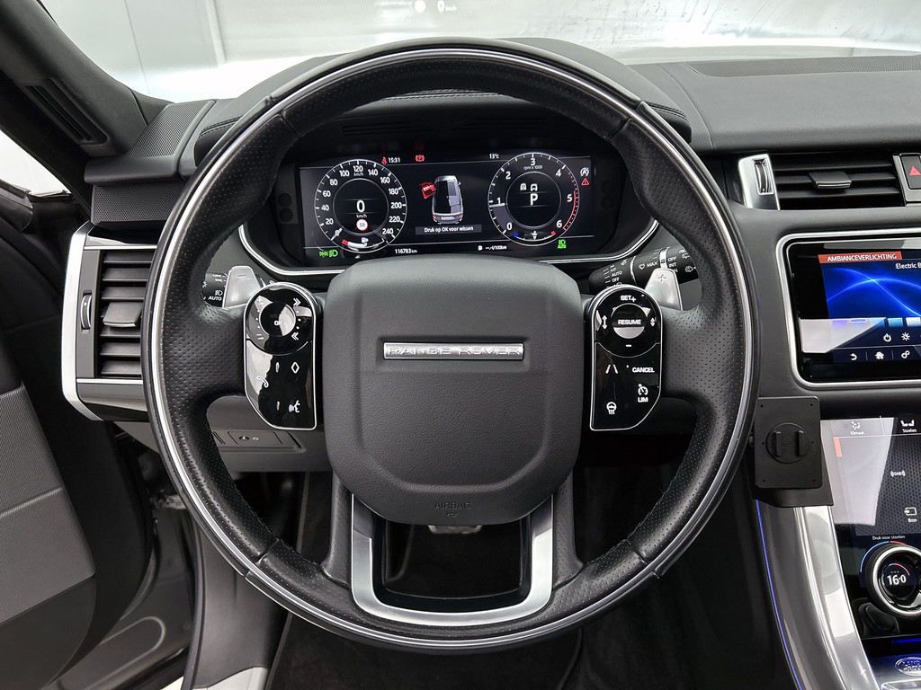 De Land Rover Range Rover Sport is ook voorzien van ADAS. Deze Advanced Driver Assistence Systems fungeren als extra ogen en oren: ze houden voor u de weg in de gaten en grijpen in wanneer dat nodig is. U hoeft onderweg uw hoofd nooit te draaien of uw blik te verplaatsen om dashboard-info af te lezen. De head-up display projecteert alles op de voorruit. U kunt rijden als een jachtpiloot. Bij de veiligheidssystemen van deze auto hoort ook de verkeersbord-detectie. Die leest tijdens het rijden als het ware met u mee en attendeert u op de significante verkeersborden langs en boven de weg. Het Lane-keeping systeem garandeert dat u zich niet onverhoeds buiten de lijnen van de rijstrook begeeft. De veiligheid van deze auto wordt verder verhoogd door dodehoekdetector detectiesysteem, hill hold functie, brake assist, vermoeidheidsherkenning en bandenspanningcontrolesysteem.