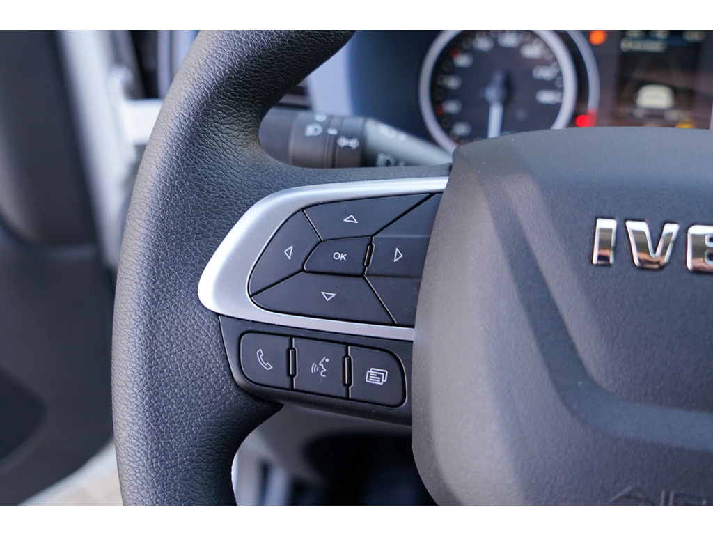 Een vergeten muurtje, een verborgen paaltje? Dat gebeurt niet meer, dankzij de achteruitrijcamera. Een belangrijke veiligheidsvoorziening is de bediening van het audio-installatiesysteem en het navigatiesysteem, via knoppen op het stuur en middels spraakbediening. DAB-ontvangst geeft daarbij een kraakheldere ontvangst. De automatische airconditioning zorgt voor een prettige binnentemperatuur. Relaxt rijden is meegeleverd in de vorm van cruise control. Ook is de IVECO uitgerust met: usb-aansluiting, centrale deurvergrendeling met afstandsbediening en verstelbaar stuur.