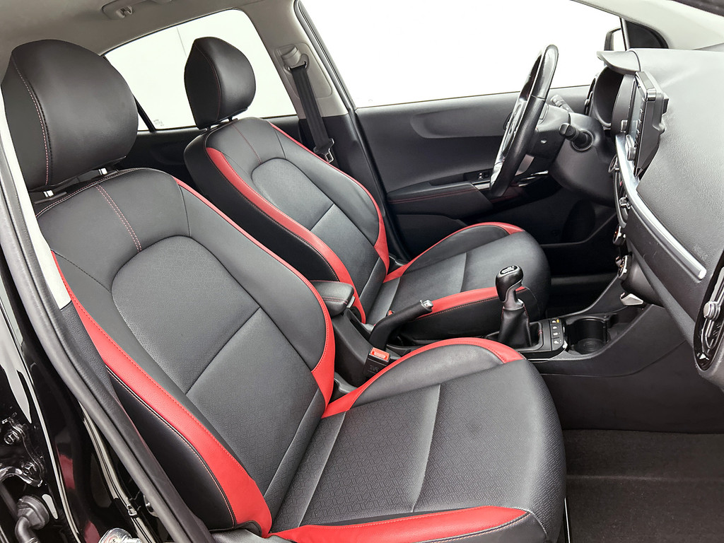 Zijn dynamische uiterlijk maakt al direct duidelijk wat voor rijervaring u van deze Kia Picanto mag verwachten: pure sportiviteit. In deze auto vindt u een benzinemotor en een handgeschakelde vijfversnellingsbak. Bij de zeer complete uitrusting van deze auto behoren ook 16 inch lichtmetalen velgen, LED-dagrijverlichting, donker getint glas achter, in delen neerklapbare achterbank en LED-achterlichten.