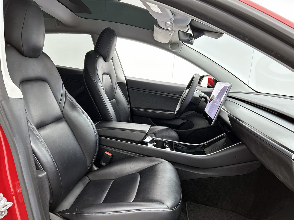 Tesla heeft de auto opnieuw uitgevonden. De volledig elektrische Tesla Model 3 is duurzaam, maar biedt tegelijk veel rijcomfort en geweldige prestaties. Dit exemplaar is van het bouwjaar 2019, er staat 122208 kilometer op de teller. De actieradius van deze auto is met 560 kilometer ruim voldoende voor de meeste dagelijkse ritten. De accu is binnen 4 uur opgeladen. Een krachtige motor geeft deze auto zijn sportieve prestaties. De stijlvolle, luxe uitstraling is inbegrepen in de vorm van leren bekleding. Zit u goed? De stoelen zijn eenvoudig instelbaar dankzij de elektrische bediening met geheugen. Wat een heerlijk ruim gevoel en zoveel licht geeft dat glazen panoramadak! Gewoon, omdat het kan. Deze Tesla Model 3 heeft zelfs een verwarmde achterbank. Tot de uitrusting behoren ook 19 inch lichtmetalen velgen en in delen neerklapbare achterbank.