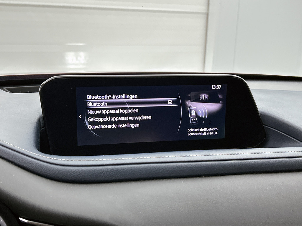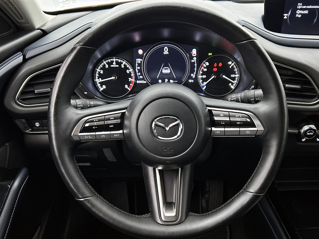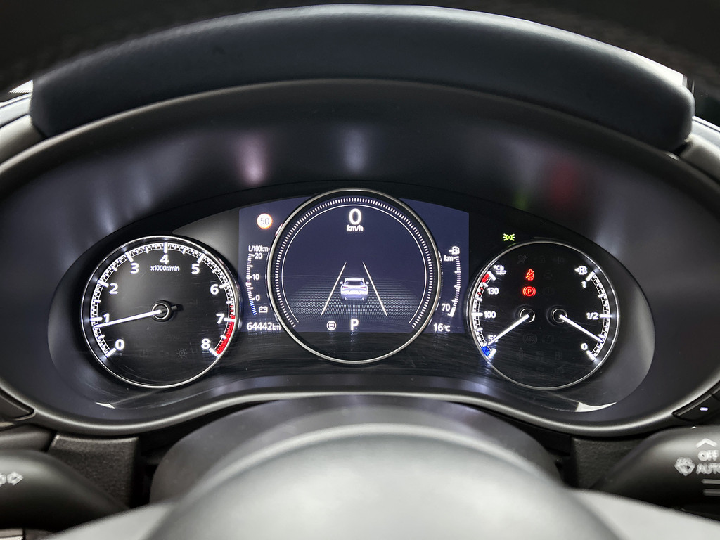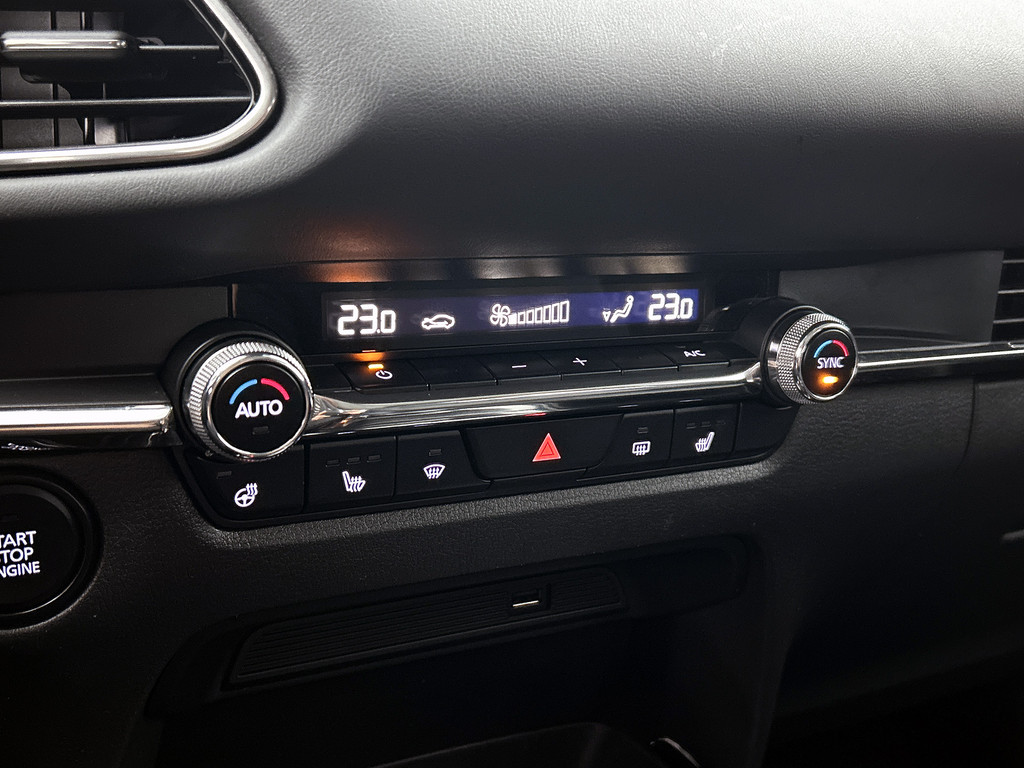 Bij het inparkeren hoeft u het laatste stukje niet te gokken: de achteruitrijcamera kijkt voor u uit. Met adaptive cruise control houdt de auto zelfstandig afstand tot uw voorligger. Een veiligheidsverhogende optie waarmee u comfortabel onderweg bent. Spraaksturing is onderdeel van de uitrusting van deze auto. Met uw stem kunt u de belangrijkste voertuigfuncties bedienen. Dankzij Connected Services heeft u overal en altijd uw dashboard op zak. Alle belangrijke functies zijn te checken via de app. Je weet altijd waar je moet zijn, dankzij het full map navigatiesysteem. Ook is de Mazda uitgerust met: automatische airconditioning, DAB ontvangst, regensensor, keyless entry, automatisch dimmende binnenspiegel en lederen stuur.