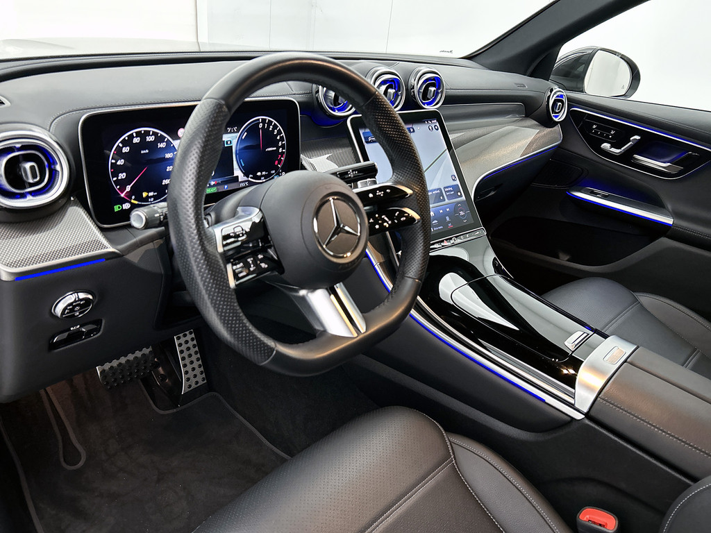 In Duitsland is auto's maken een ernstige serieuze zaak. Dat blijkt al jaren door de onderscheidende rijkwaliteiten, oerdegelijke uitvoering en technische innovatie van Duitse merken. De AMG-styling geeft dit model een elegante en opvallende uitstraling. Elektrisch? Benzine? Bij deze Mercedes-Benz GLC-klasse kan het allebei. De hybride motor biedt de ideale keuzecombinatie. Ja, en die luchtvering, dat is wel heel prettig hoor. Stabiliteit, weinig windweerstand, optimaal contact met de weg. Een erg fijne extra. Met zijn lederen bekleding is deze Mercedes-Benz comfortabel en stijlvol. 's Winters komen de verwarmbare voorstoelen heerlijk van pas. En ze zijn ook nog eens voorzien van massagefunctie. Zit u goed? De stoelen zijn eenvoudig instelbaar dankzij de elektrische bediening met geheugen. De elektrisch bedienbare achterklep opent met een druk op de knop. U wordt in deze auto ook getrakteerd op 19 inch lichtmetalen velgen, LED koplampen, AMG-styling, zwarte hemelbekleding, donker getint glas achter en neerklapbare achterbank.