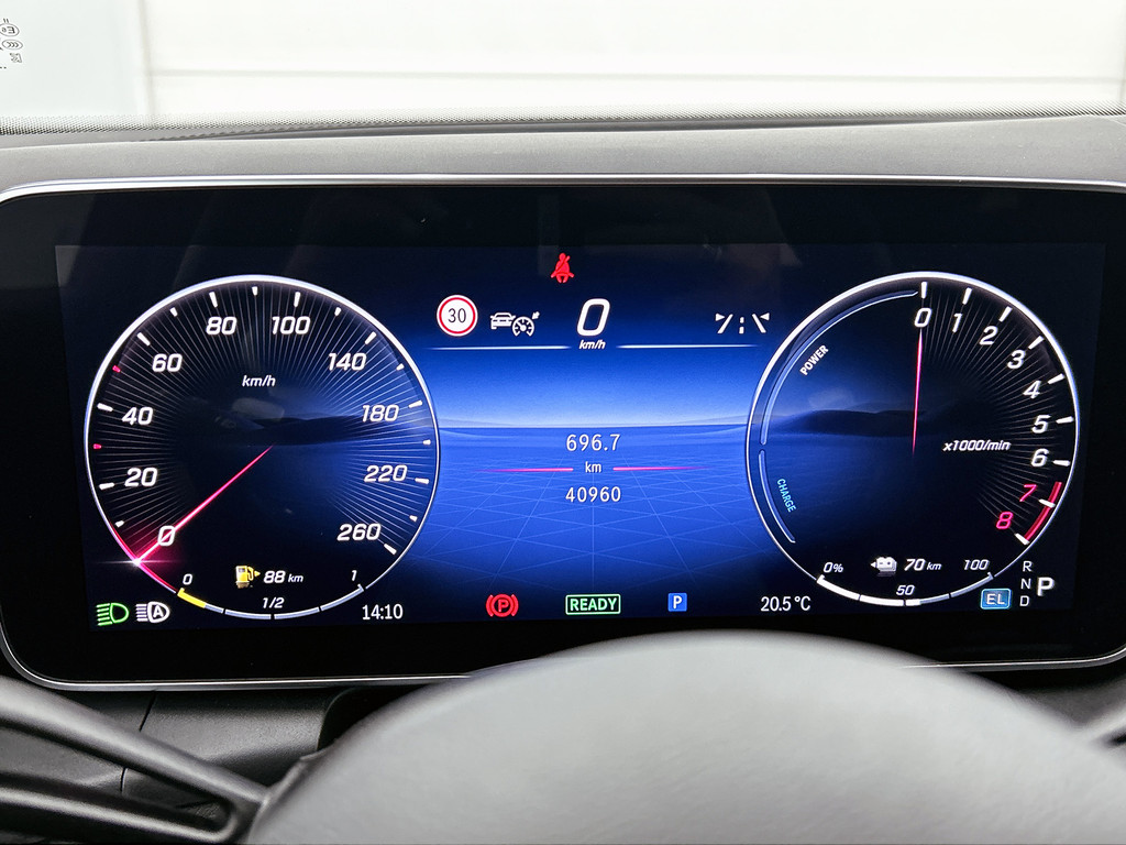 Het eigentijdse interieur wordt natuurlijk helemaal volmaakt met het digitale dashboard. Met de 360 graden camera kunt u elk obstakel of gevaar rondom de auto detecteren, wat uw veiligheid verhoogt. Met adaptive cruise control houdt de auto zelfstandig afstand tot uw voorligger. Een veiligheidsverhogende optie waarmee u comfortabel onderweg bent. Dankzij Connected Services heeft u overal en altijd uw dashboard op zak. Alle belangrijke functies zijn te checken via de app. Even de smartphone erin klikken en de draadloze telefoonlader zorgt vanzelf voor nieuwe energie. De Mercedes-Benz is standaard voorzien van: dashboard met spraakbediening, navigatiesysteem met harde schijf, WIFI-hotspot, achteropkomend verkeer waarschuwing, automatische airconditioning en sportstuur met schakelpaddels.