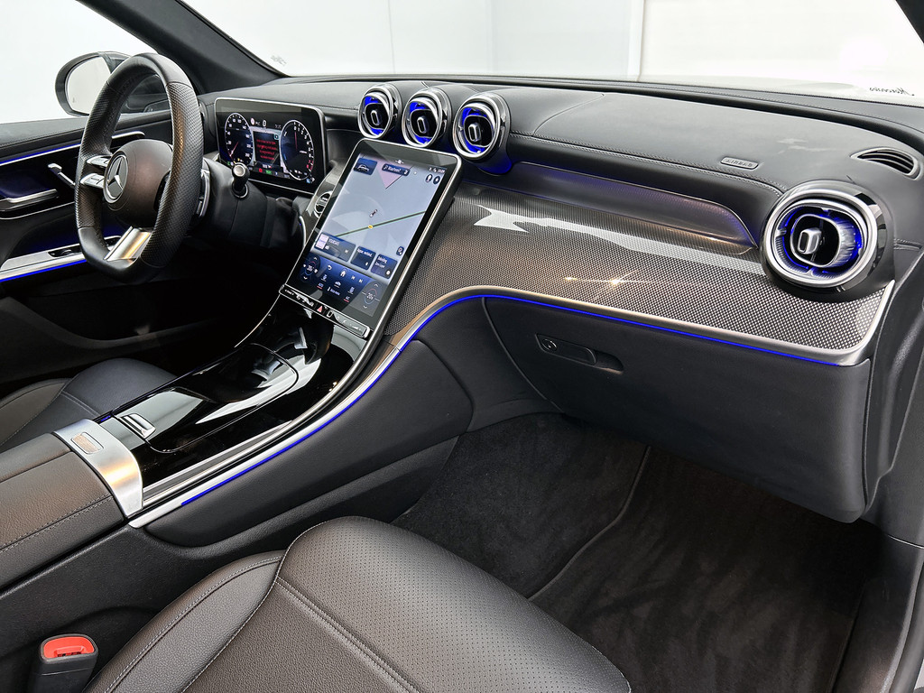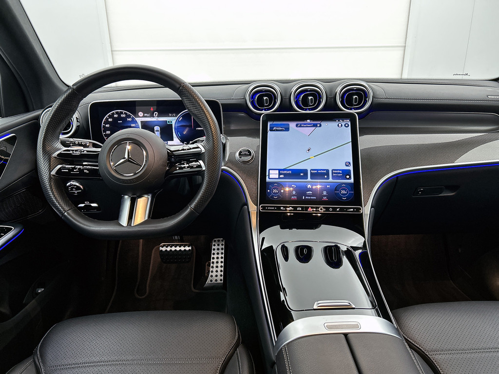 In Duitsland is auto's maken een ernstige serieuze zaak. Dat blijkt al jaren door de onderscheidende rijkwaliteiten, oerdegelijke uitvoering en technische innovatie van Duitse merken. De AMG-styling geeft dit model een elegante en opvallende uitstraling. Elektrisch? Benzine? Bij deze Mercedes-Benz GLC-klasse kan het allebei. De hybride motor biedt de ideale keuzecombinatie. Ja, en die luchtvering, dat is wel heel prettig hoor. Stabiliteit, weinig windweerstand, optimaal contact met de weg. Een erg fijne extra. Met zijn lederen bekleding is deze Mercedes-Benz comfortabel en stijlvol. 's Winters komen de verwarmbare voorstoelen heerlijk van pas. En ze zijn ook nog eens voorzien van massagefunctie. Zit u goed? De stoelen zijn eenvoudig instelbaar dankzij de elektrische bediening met geheugen. De elektrisch bedienbare achterklep opent met een druk op de knop. U wordt in deze auto ook getrakteerd op 19 inch lichtmetalen velgen, LED koplampen, AMG-styling, zwarte hemelbekleding, donker getint glas achter en neerklapbare achterbank.
