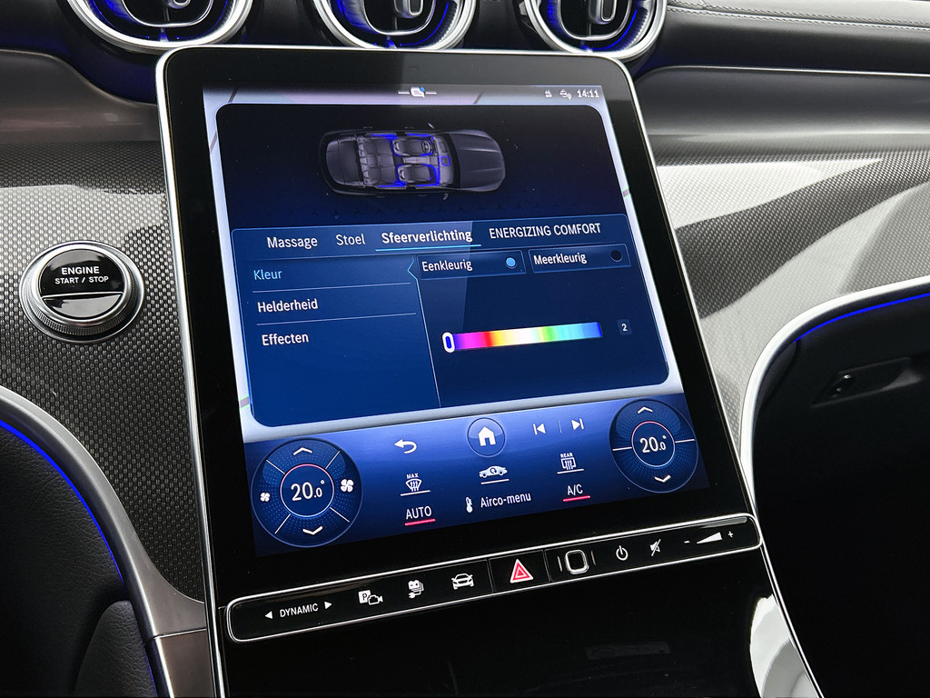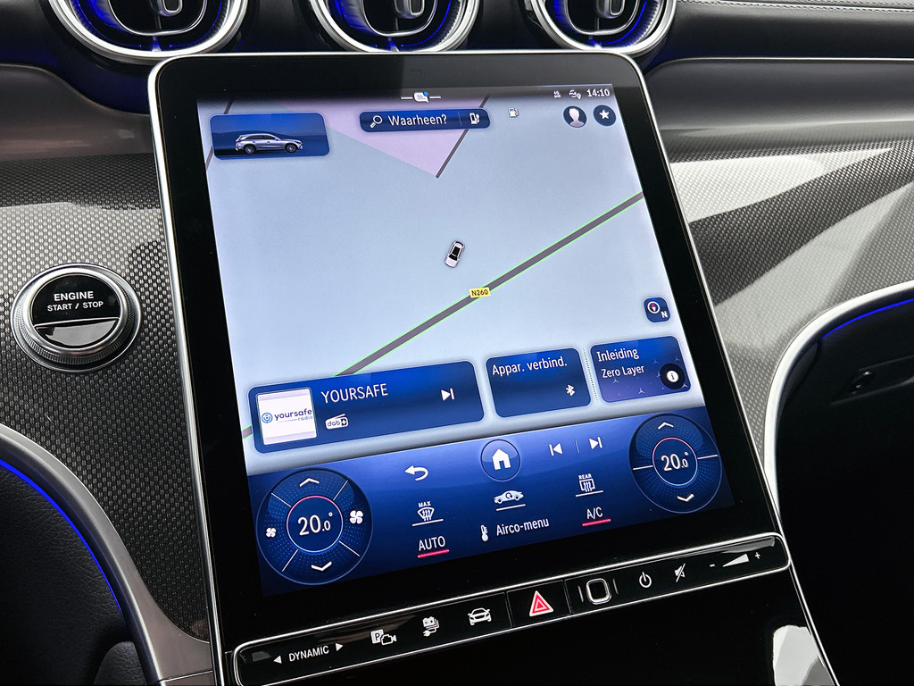 Het eigentijdse interieur wordt natuurlijk helemaal volmaakt met het digitale dashboard. Met de 360 graden camera kunt u elk obstakel of gevaar rondom de auto detecteren, wat uw veiligheid verhoogt. Met adaptive cruise control houdt de auto zelfstandig afstand tot uw voorligger. Een veiligheidsverhogende optie waarmee u comfortabel onderweg bent. Dankzij Connected Services heeft u overal en altijd uw dashboard op zak. Alle belangrijke functies zijn te checken via de app. Even de smartphone erin klikken en de draadloze telefoonlader zorgt vanzelf voor nieuwe energie. De Mercedes-Benz is standaard voorzien van: dashboard met spraakbediening, navigatiesysteem met harde schijf, WIFI-hotspot, achteropkomend verkeer waarschuwing, automatische airconditioning en sportstuur met schakelpaddels.