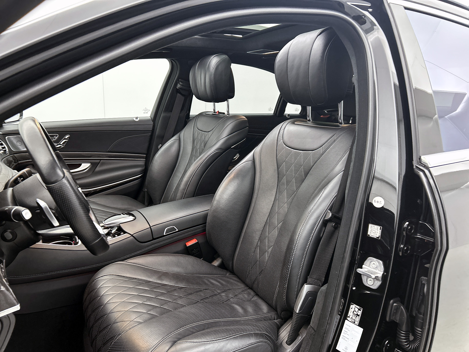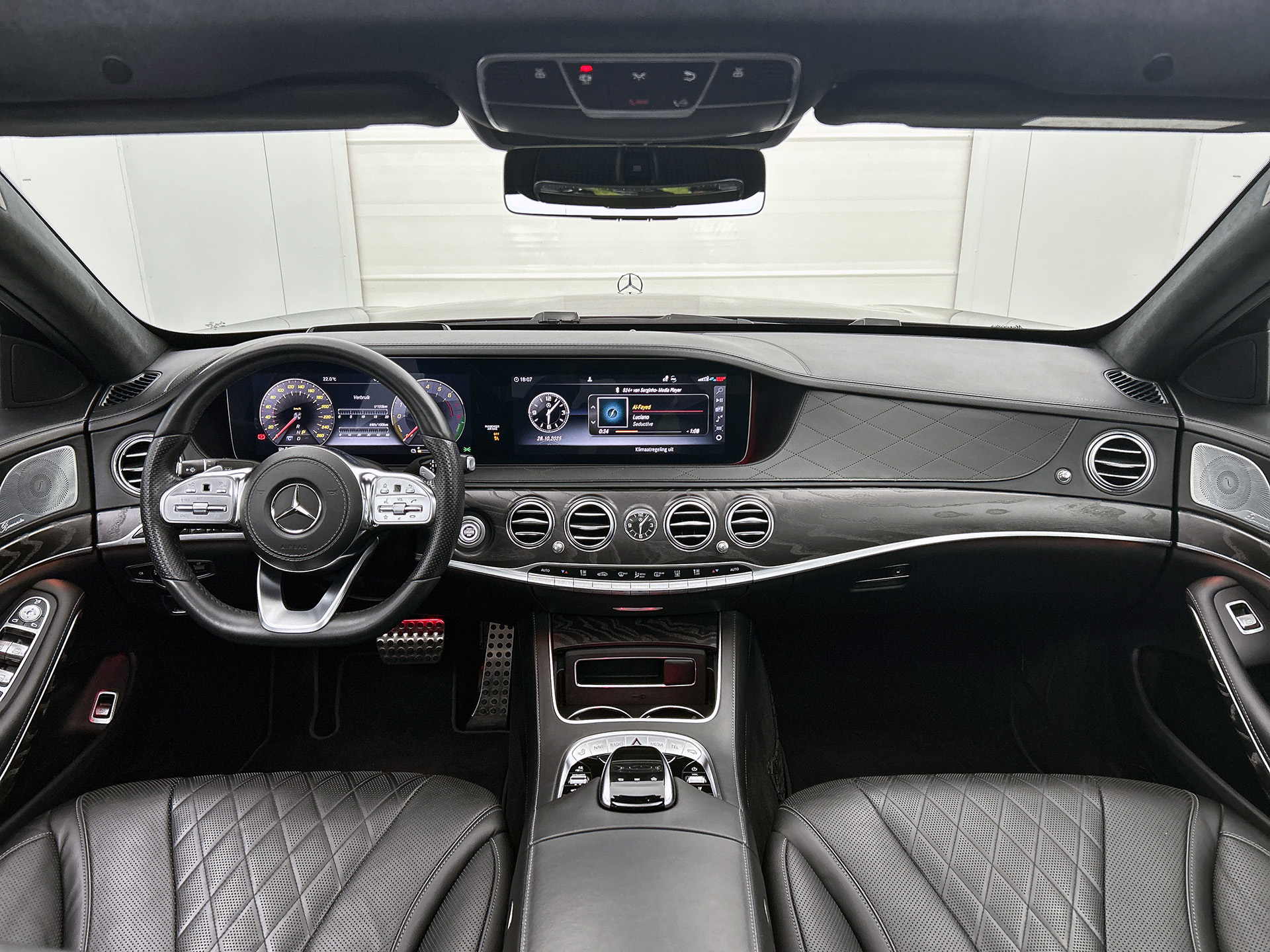 Zoals u mag verwachten van deze Mercedes-Benz S-klasse is hij uitgerust met een reeks aan actieve veiligheidssystemen. Verkeersborddetectie herkent tijdelijke en permanente verkeersborden langs en boven de weg. Het Lane-keeping systeem doet precies wat nodig is: waarschuwen en corrigeren bij onbedoelde overschrijding van de rijstrooklijnen. Een korte blik over uw schouder bij inhalen of afslaan is niet altijd genoeg. De actieve dodehoekdetectie helpt de veiligheid te vergroten. De auto is ook uitgerust met head-up display, front assist, forward collision warning system, hill hold functie, vermoeidheidsherkenning en autonoom remsysteem.