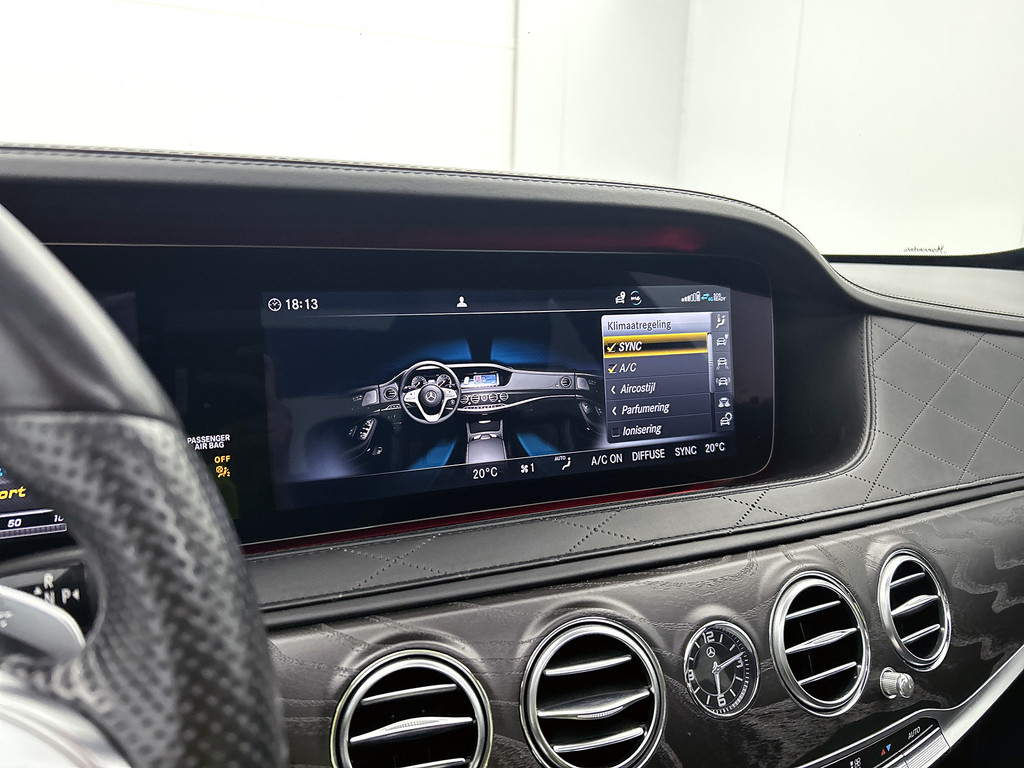 Zoals u mag verwachten van deze Mercedes-Benz S-klasse is hij uitgerust met een reeks aan actieve veiligheidssystemen. Verkeersborddetectie herkent tijdelijke en permanente verkeersborden langs en boven de weg. Het Lane-keeping systeem doet precies wat nodig is: waarschuwen en corrigeren bij onbedoelde overschrijding van de rijstrooklijnen. Een korte blik over uw schouder bij inhalen of afslaan is niet altijd genoeg. De actieve dodehoekdetectie helpt de veiligheid te vergroten. De auto is ook uitgerust met head-up display, front assist, forward collision warning system, hill hold functie, vermoeidheidsherkenning en autonoom remsysteem.