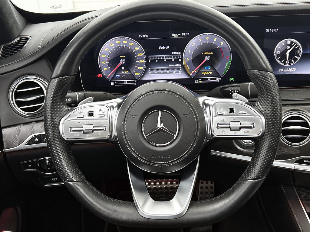 Ontspannen en zorgeloos autorijden, dat doet u met deze Mercedes-Benz S-klasse. Deze auto uit het bouwjaar 2019 heeft 129107 kilometer gelopen. Stijlvolle sportiviteit in uitstraling komt van de AMG-styling. Met een zescilinder benzinemotor en een automatische transmissie beschikt deze Mercedes-Benz over uitstekende prestaties. Die stevige wegligging? Dat heeft te maken met de luchtvering. Altijd de juiste druk, dus constante hoogte en geen last van hobbels. Met zijn lederen bekleding is deze Mercedes-Benz comfortabel en stijlvol. De handen worden snel opgewarmd dankzij de stuurverwarming en het lichaam blijft aangenaam warm door de stoelverwarming met massagefunctie en verwarmbare achterbank. U past de stoelen moeiteloos aan, ze zijn elektrisch in te stellen en hebben bovendien een geheugen. Een heerlijk zonnetje, of indrukwekkende wolkenpartijen? Bekijk ze onbelemmerd door het elektrisch bediende glazen panoramadak. De elektrisch bedienbare achterklep opent met een druk op de knop. Natuurlijk behoren elektrisch verstelbare stuurkolom, elektrische zonnerollo voor de achterruit, 20 inch lichtmetalen velgen, AMG-styling, LED-koplampen en adaptief dempingsysteem ook tot de uitrusting van deze complete auto.