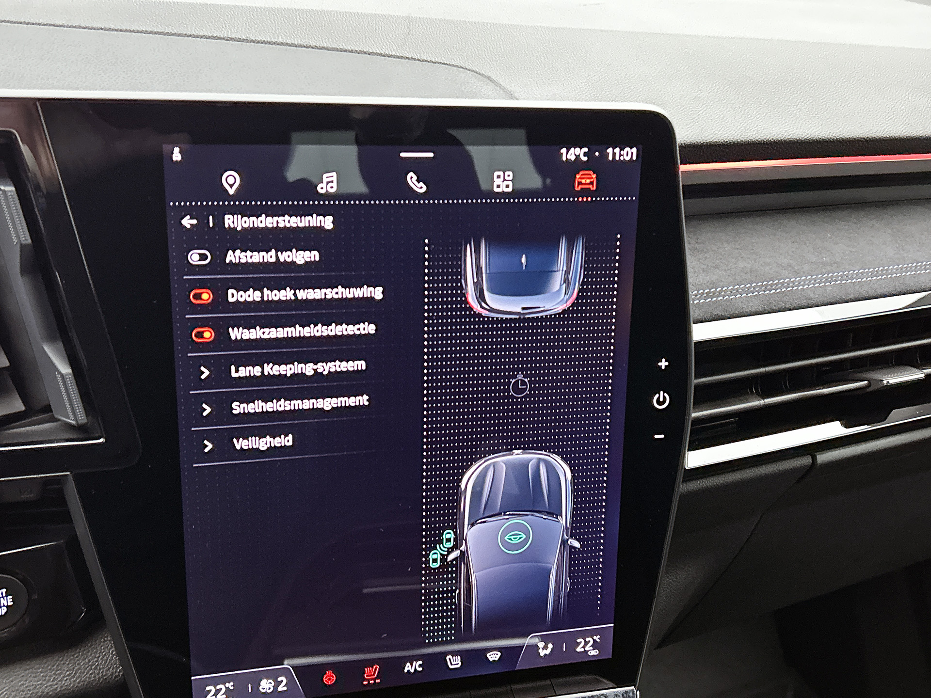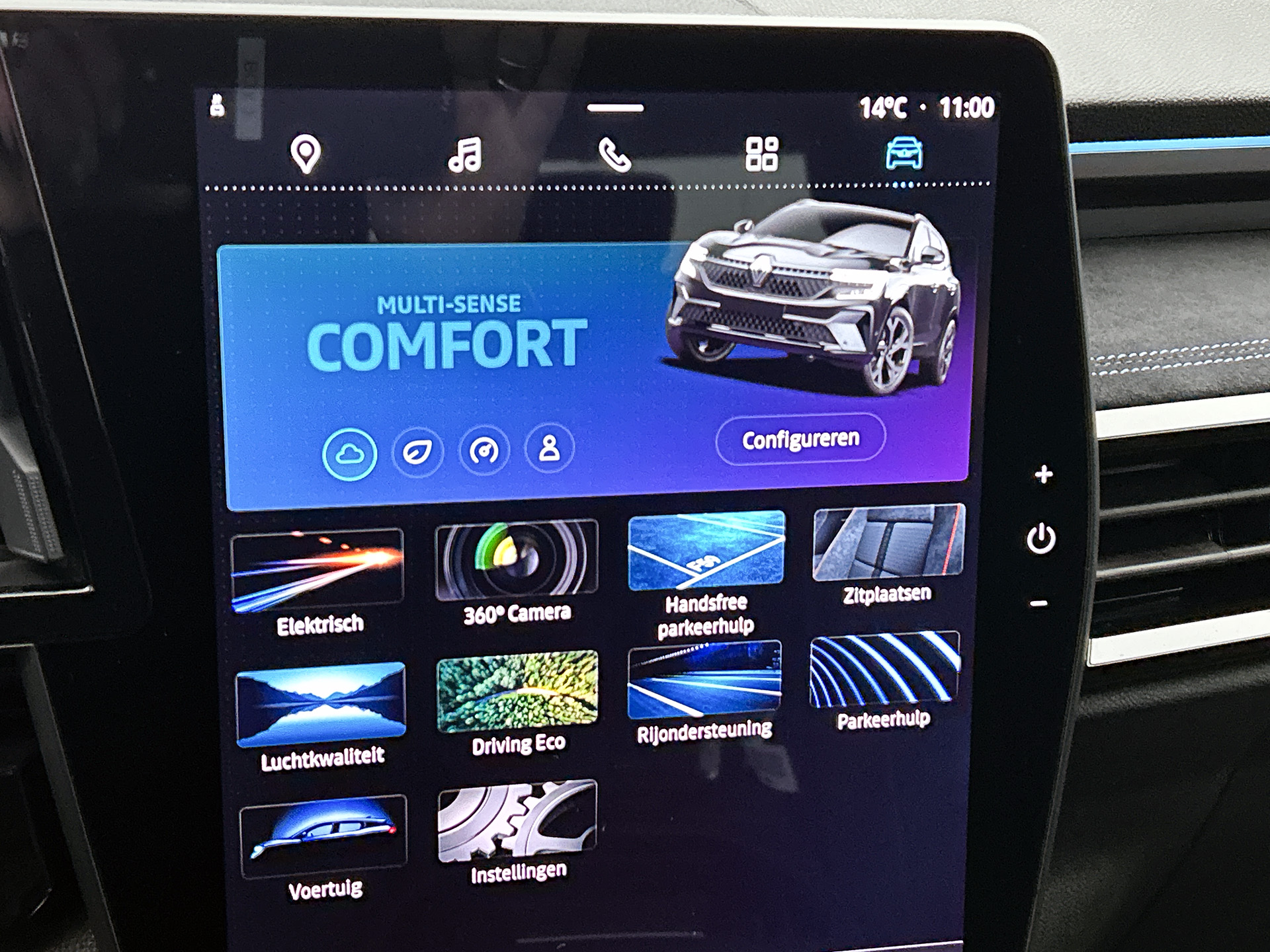 Aan boord van deze Renault houden verschillende geavanceerde systemen voor u de weg in de gaten. Ze waarschuwen u voor noodsituaties en kunnen in een aantal gevallen ook zelf ingrijpen. In het instrumentarium kunt u bovendien de verkeersborden zien die u onderweg tegenkomt. Zo helpt deze Renault u om veiliger te rijden. Het Lane-keeping systeem zorgt voor een automatisch constante positie binnen de rijstrook. Afdwalen is uitgesloten. Elke auto heeft een of meer blinde vlekken. De actieve dodehoekdetectie waarschuwt als er gevaar voor een aanrijding bestaat. In deze Renault vinden we verder een forward collision warning system, hill hold functie, brake assist, vermoeidheidsherkenning en bandenspanningcontrolesysteem.
