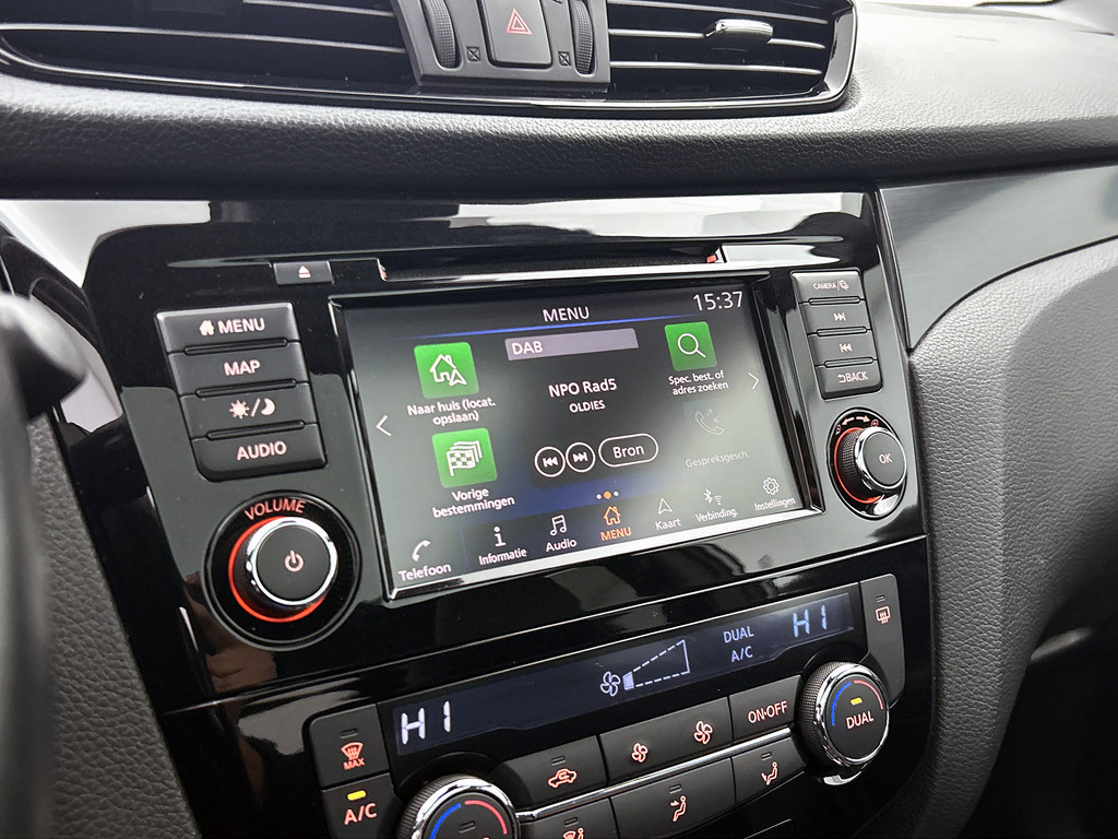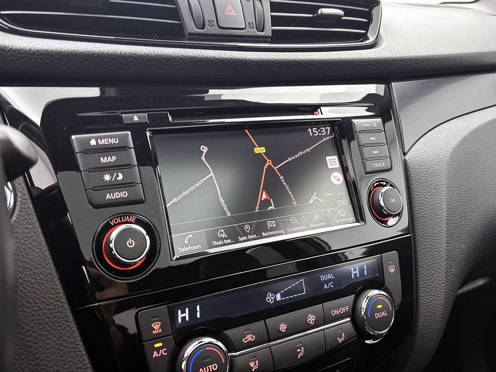 De nieuwste veiligheidssystemen komen in deze Nissan Qashqai samen. De camera van de verkeersborddetectie herkent verschillende soorten verkeersborden en toont deze op het dashboard. Het Lane-keeping systeem let constant op en waarschuwt of corrigeert als u onoplettend over de lijnen van de rijstrook gaat. Bij concentratieverlies en toenemende vermoeidheid van de bestuurder, geeft de auto een sterk signaal om u weer bij de les te houden. Hierdoor kunnen veel ongelukken voorkomen worden. Verder is deze auto uitgerust met dodehoekdetectie, hill hold functie, brake assist en bandenspanningcontrolesysteem.