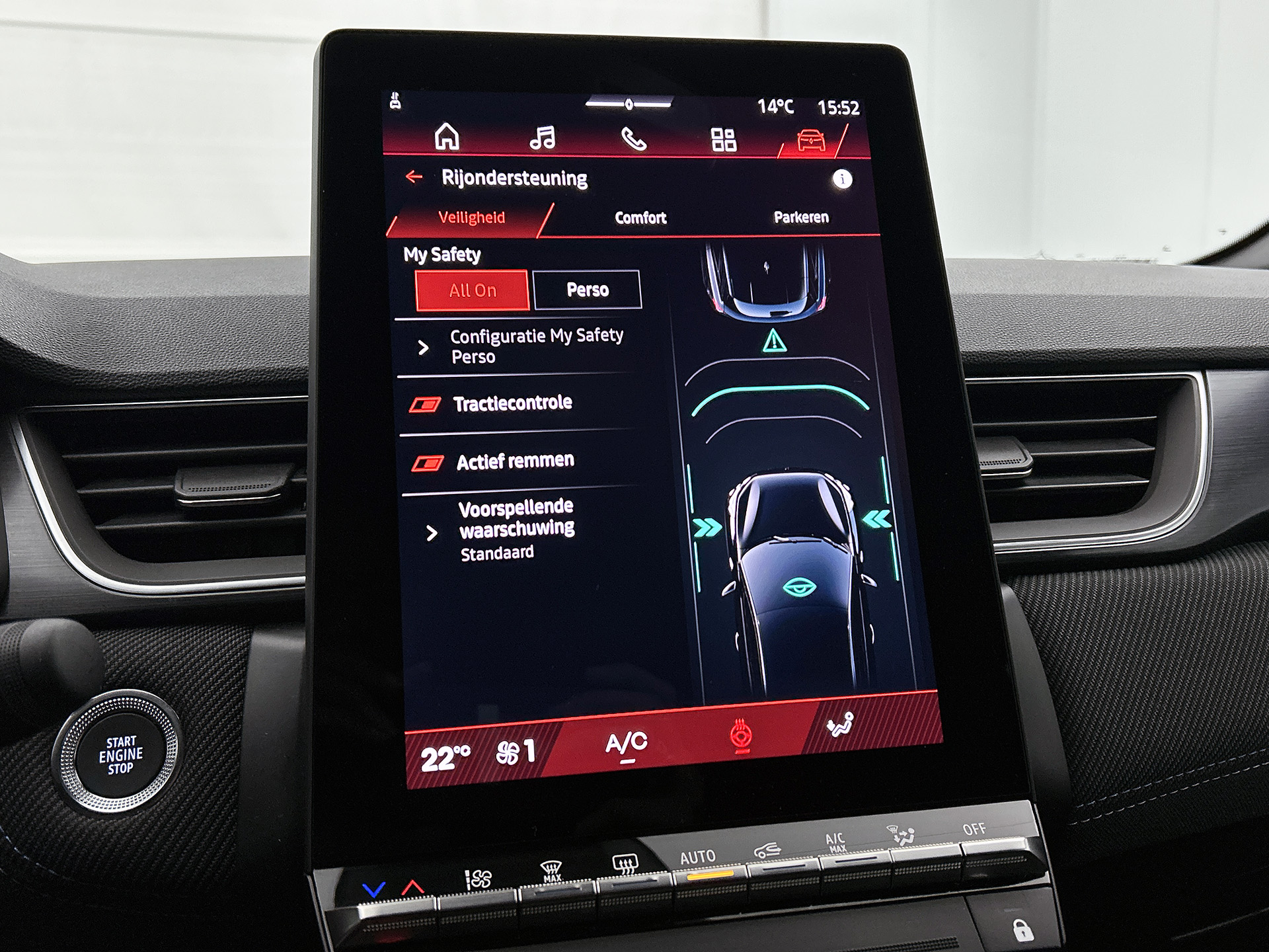 Geavanceerde systemen kunnen tijdens de rit bepaalde taken van u overnemen. Zo kijken er als het ware steeds extra ogen met u mee, zodat u tijdig kunt reageren op noodsituaties. Deze Renault Symbioz is ook behulpzaam als het gaat om een rechte koers. Het Lane-keeping systeem signaleert en corrigeert als u onbedoeld de rijstrooklijnen dreigt te overschrijden. Forward collision warning waarschuwt bij een dreigende aanrijding met een voorligger. De veiligheidssystemen in deze auto nemen het zelfs waar als de bestuurder tekenen van vermoeidheid vertoont, en waarschuwen dan met een duidelijk signaal. Verder is deze auto uitgerust met autonoom remsysteem en bandenspanningcontrolesysteem.