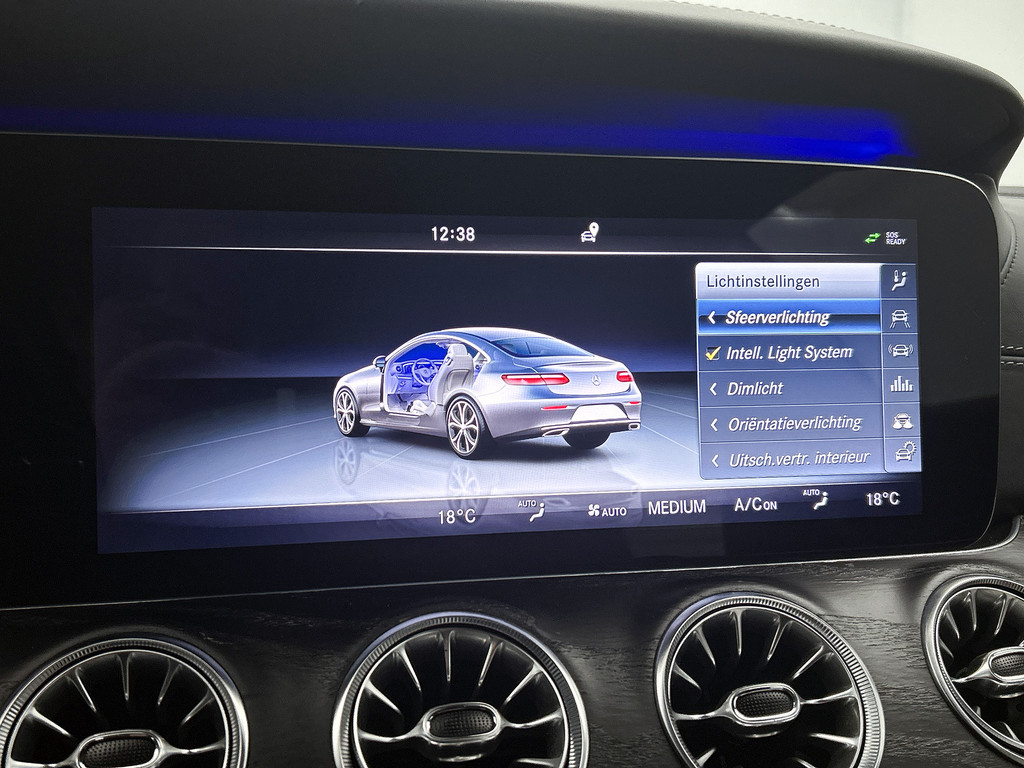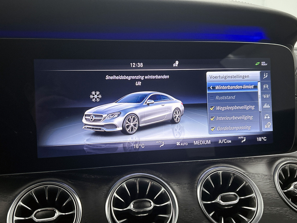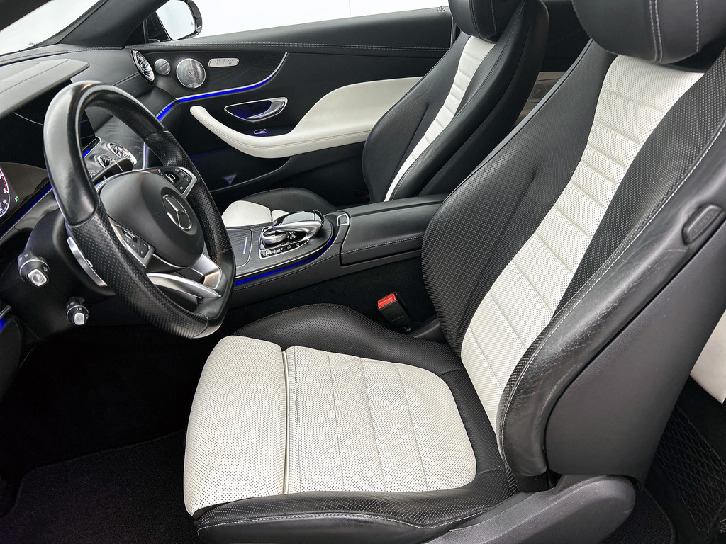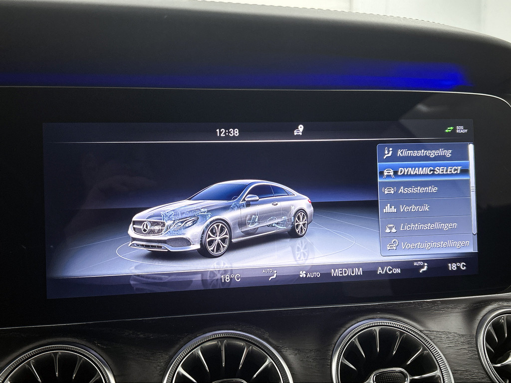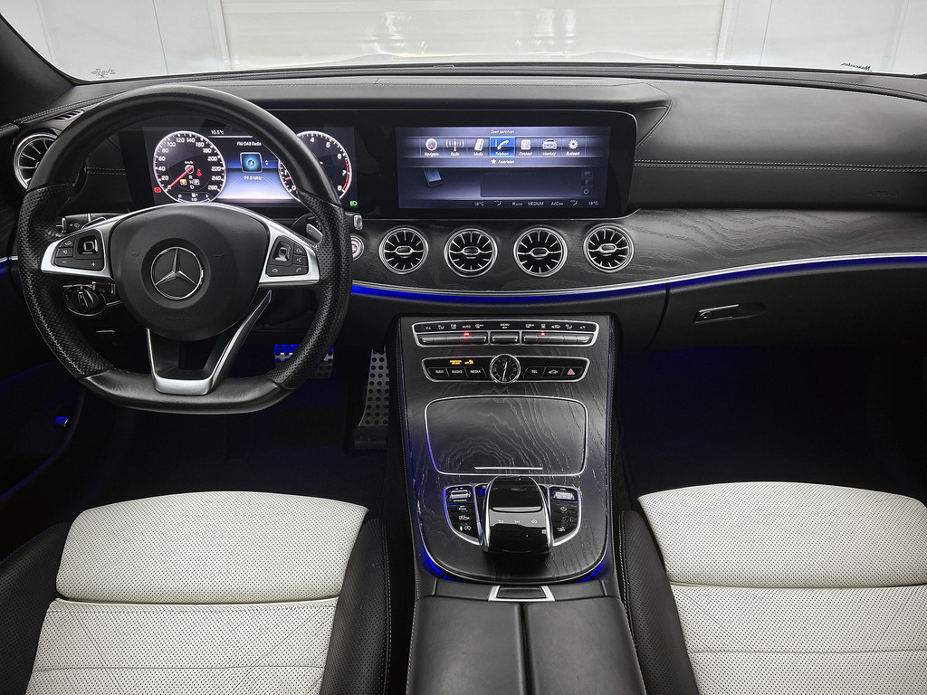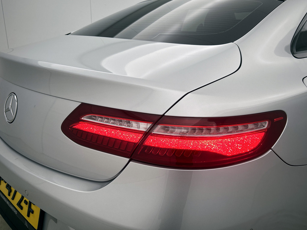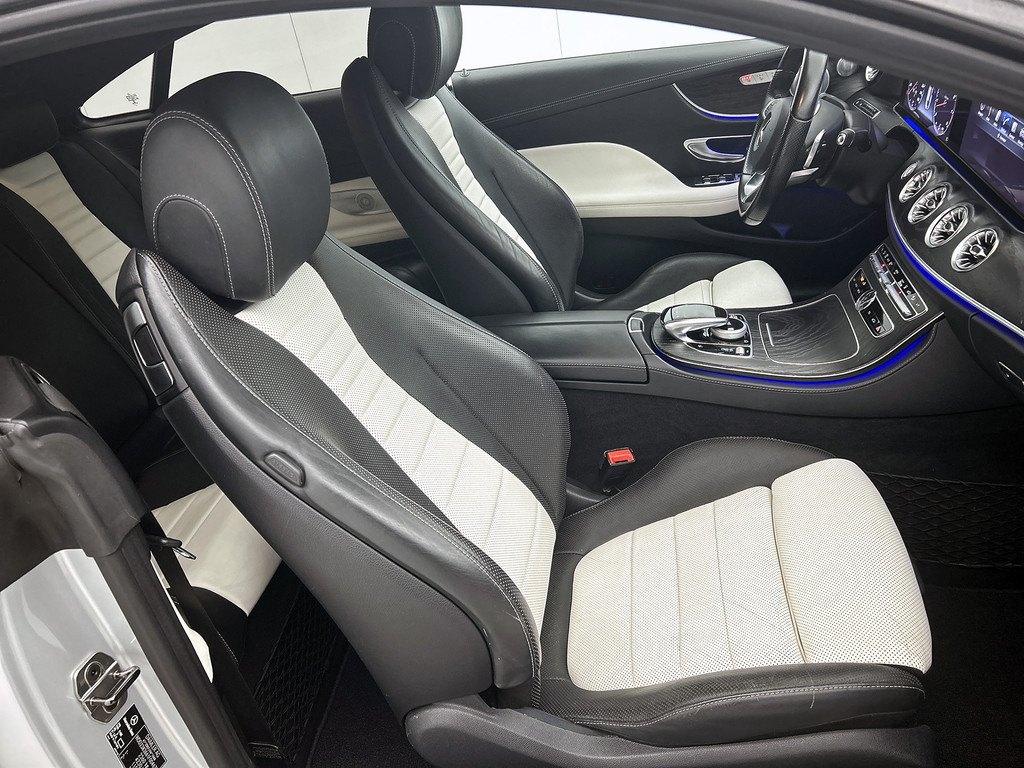 Zoals u mag verwachten van deze Mercedes-Benz E-klasse Coupé is hij uitgerust met een reeks aan actieve veiligheidssystemen. Het forward collision warning-systeem waarschuwt indien een botsing dreigt met een voorliggend of tegemoetkomend voertuig. Met de vermoeidheidsassistent bent u ook op lange ritten veilig op pad. Het systeem geeft een waarschuwing zodra het tijd is voor een pauze. Mooi binnen de lijnen van de rijstrook blijven? Het Lane-keeping systeem helpt altijd een handje. De veiligheid van deze auto wordt verder verhoogd door autonoom remsysteem en dodehoekdetectie.