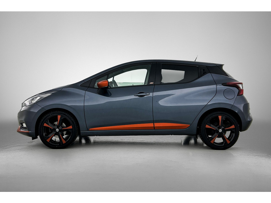 De functie van deze 360 graden camera is vooral nuttig in smalle straatjes waar het zicht beperkt is. De luidsprekers van het high performance audiosysteem omringen u met een uitgebalanceerd geluid. De kortste weg, de zuinigste weg, de snelste weg... elke weg is te vinden met het full map navigatiesysteem. Ook over uw schouder ziet u onderweg niet alles wat er aan de achterzijde gebeurt. Daarom heeft deze Nissan Micra een achteropkomend verkeer waarschuwing. Dankzij automatische airconditioning is het interieur behaaglijk warm of verfrissend koel. Wat u ook in deze auto kunt vinden zijn DAB ontvangst, regensensor, cruise control, keyless entry, lederen stuur en isofix-aansluiting.