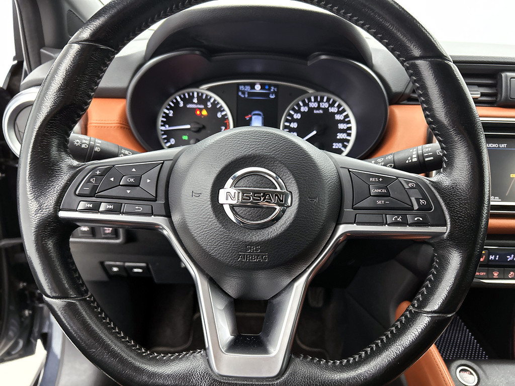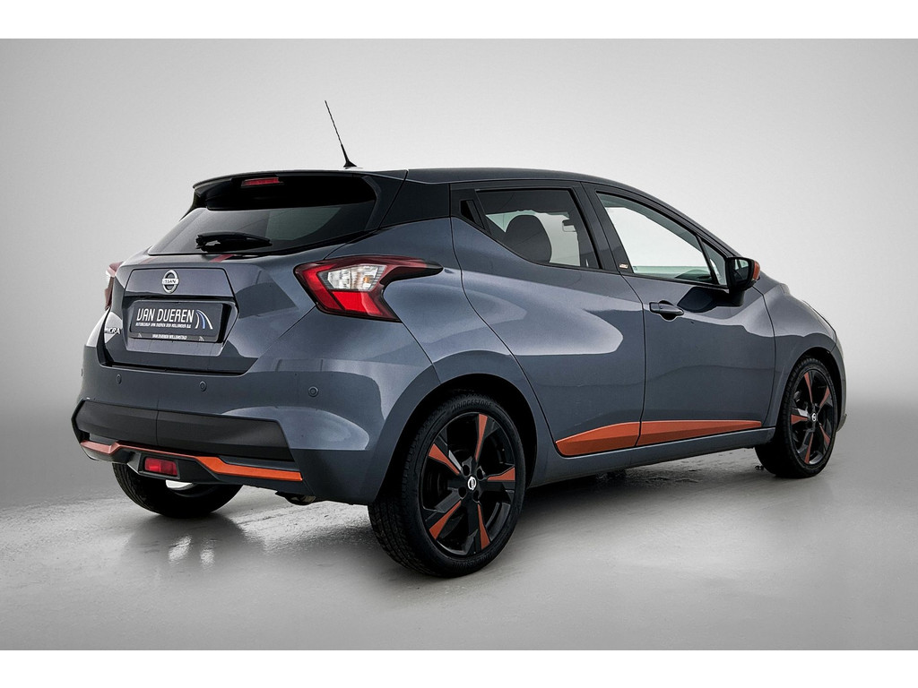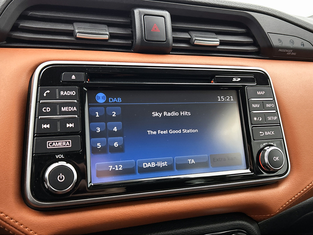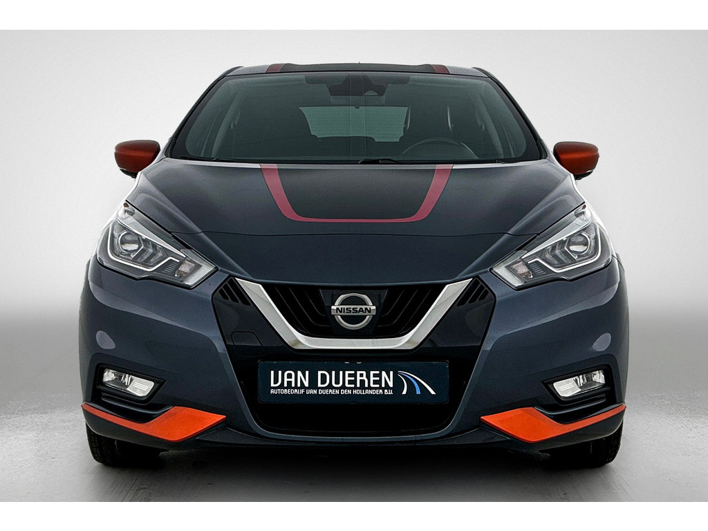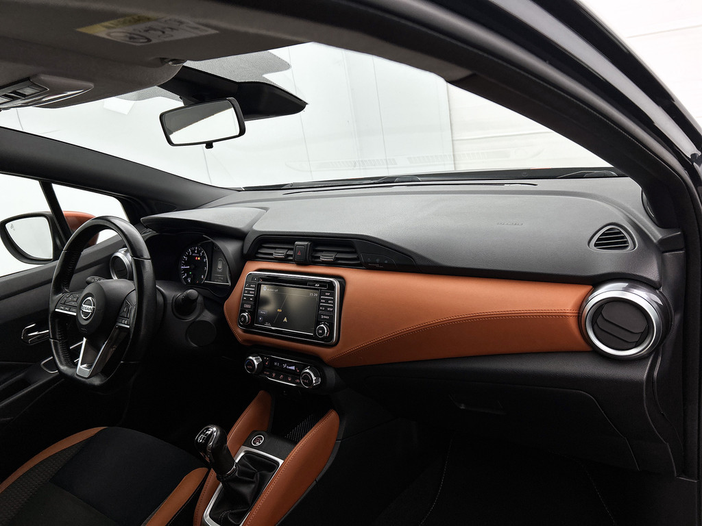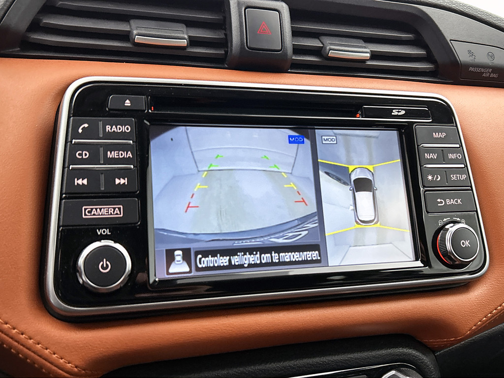 De functie van deze 360 graden camera is vooral nuttig in smalle straatjes waar het zicht beperkt is. De luidsprekers van het high performance audiosysteem omringen u met een uitgebalanceerd geluid. De kortste weg, de zuinigste weg, de snelste weg... elke weg is te vinden met het full map navigatiesysteem. Ook over uw schouder ziet u onderweg niet alles wat er aan de achterzijde gebeurt. Daarom heeft deze Nissan Micra een achteropkomend verkeer waarschuwing. Dankzij automatische airconditioning is het interieur behaaglijk warm of verfrissend koel. Wat u ook in deze auto kunt vinden zijn DAB ontvangst, regensensor, cruise control, keyless entry, lederen stuur en isofix-aansluiting.
