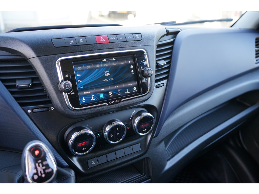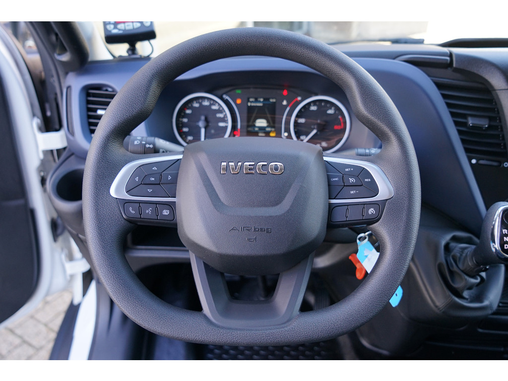 Een vergeten muurtje, een verborgen paaltje? Dat gebeurt niet meer, dankzij de achteruitrijcamera. Een belangrijke veiligheidsvoorziening is de bediening van het audio-installatiesysteem en het navigatiesysteem, via knoppen op het stuur en middels spraakbediening. DAB-ontvangst geeft daarbij een kraakheldere ontvangst. De automatische airconditioning zorgt voor een prettige binnentemperatuur. Relaxt rijden is meegeleverd in de vorm van cruise control. Ook is de IVECO uitgerust met: usb-aansluiting, centrale deurvergrendeling met afstandsbediening en verstelbaar stuur.