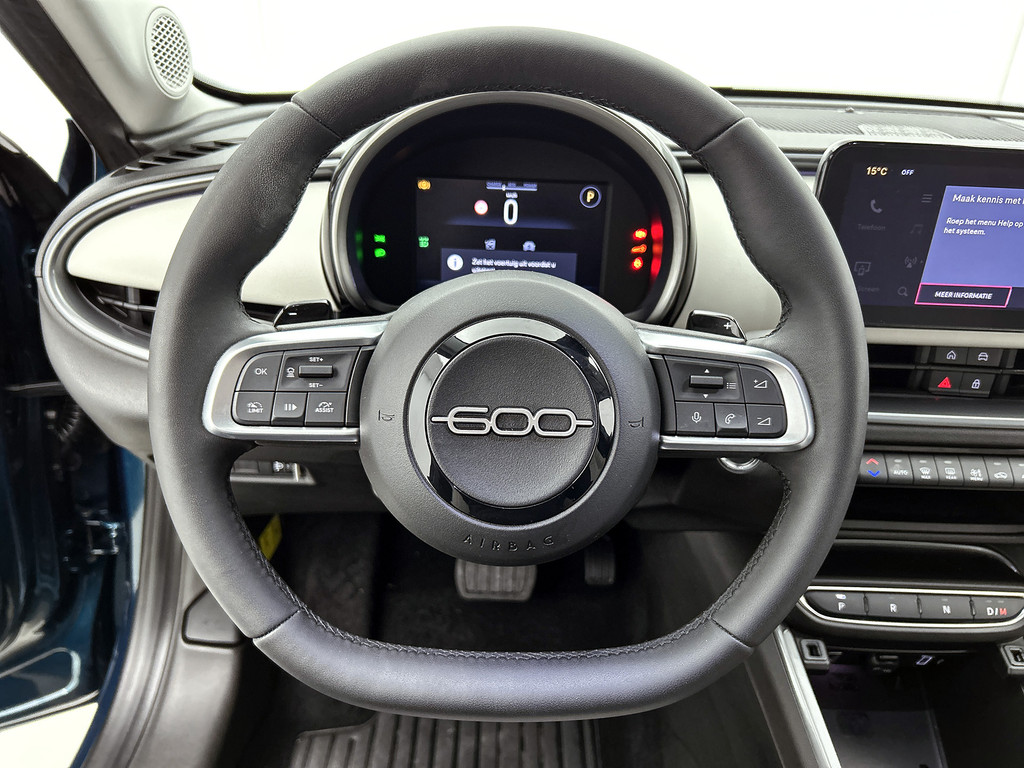 De Fiat 600 is ook voorzien van ADAS. Deze Advanced Driver Assistence Systems fungeren als extra ogen en oren: ze houden voor u de weg in de gaten en grijpen in wanneer dat nodig is. Een belangrijke bijdrage aan de veiligheid onderweg levert de verkeersbord-detectie in deze Fiat. Op lange ritten voorkomt de vermoeidheidsassistent dat uw concentratie afneemt. U bent mede dankzij dodehoekdetectie en autonoom remsysteem steeds veilig onderweg.