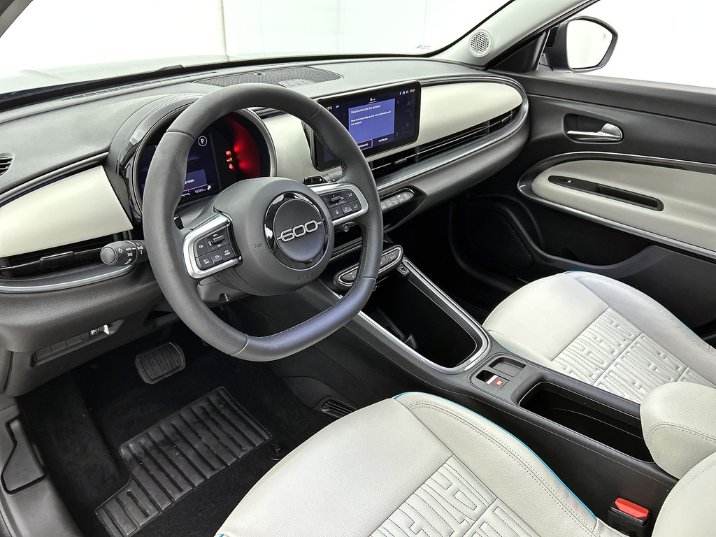 Een Italiaanse auto is altijd een prachtige mix van uitstekende rijkwaliteiten en een stijlvol uiterlijk. Dat is bij deze Fiat 600 al niet anders. Dit is een auto uit 2025, hij heeft 15384 kilometer op de teller staan. In deze auto vindt u een benzinemotor en een automatische transmissie. Hoe koud het buiten ook is, de stoelverwarming geeft u meteen een behaaglijk gevoel. De achterklep opent automatisch met een druk op de knop. Handig als u met volle handen staat. Bij de uitrusting van deze auto horen onder meer 18 inch lichtmetalen velgen, LED-dagrijverlichting, donker getint glas achter, in delen neerklapbare achterbank en LED-achterlichten.